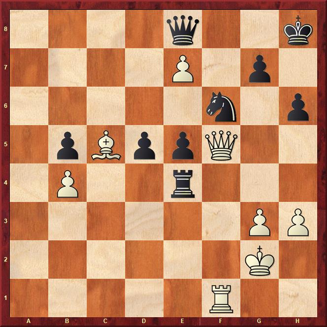 A mellékelt ábra a női főszereplő, Beth Harmon játszmájából való. Világos lép és nyer pár lépésben.